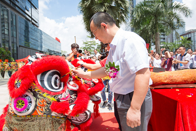 庆典开始前,按照广东的习俗,在礼仪的主持下,公司董事长茅庆江先生、总经理雷洪文先生与众高管出席了开场仪式并在签到处签到。随后,由茅总、雷总为本次庆典精心准备的瑞狮点睛,用一场精彩的舞狮彻底点燃了现场。